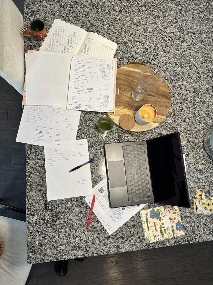 That image above is what brings me calm. Don’t get me wrong, money causes me stress. But I know that once I get the paper, pens, and plan out, I’ll find peace on the other side. Required items for every biweekly budgeting session: espresso, a lit candle, a quiet home, a planner used solely for writing out numbers, a blank sheet of computer paper, and my favorite pens. A phone or laptop must be nearby to access my banking and credit card apps.